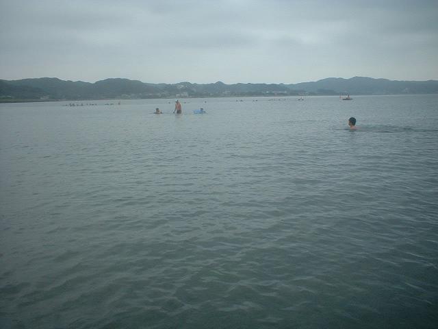 左側は外洋に面していて遠浅で暖かく感じます。
