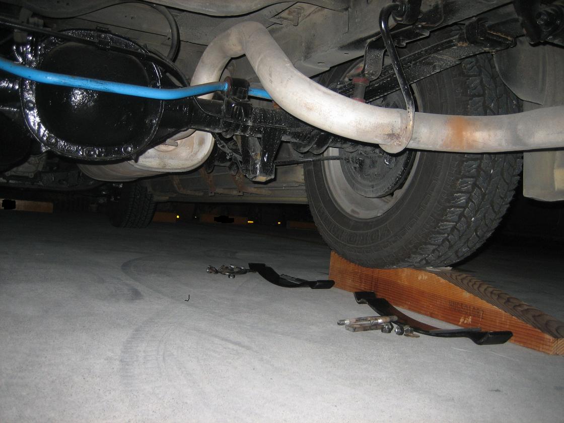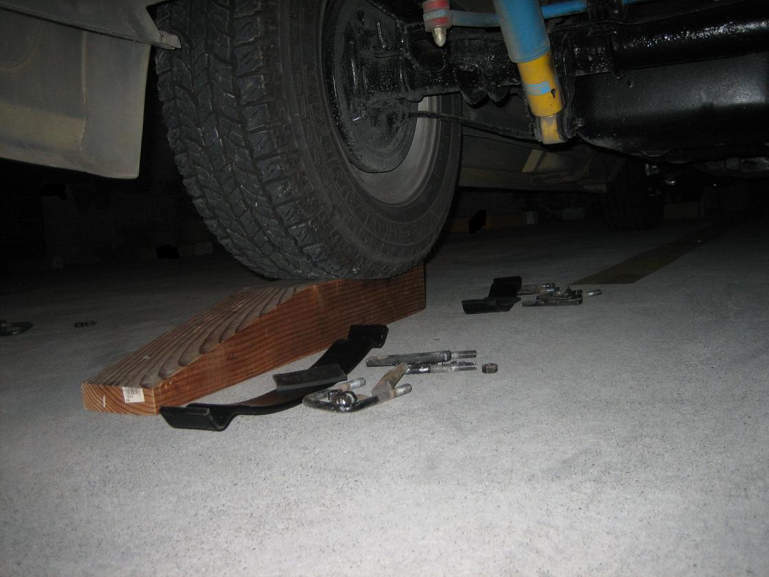 取り付けはリーフの上にヘルパースプリングを乗せてブラケットで止めるだけ。(本来は要加工箇所あり。私の場合は省きました)
