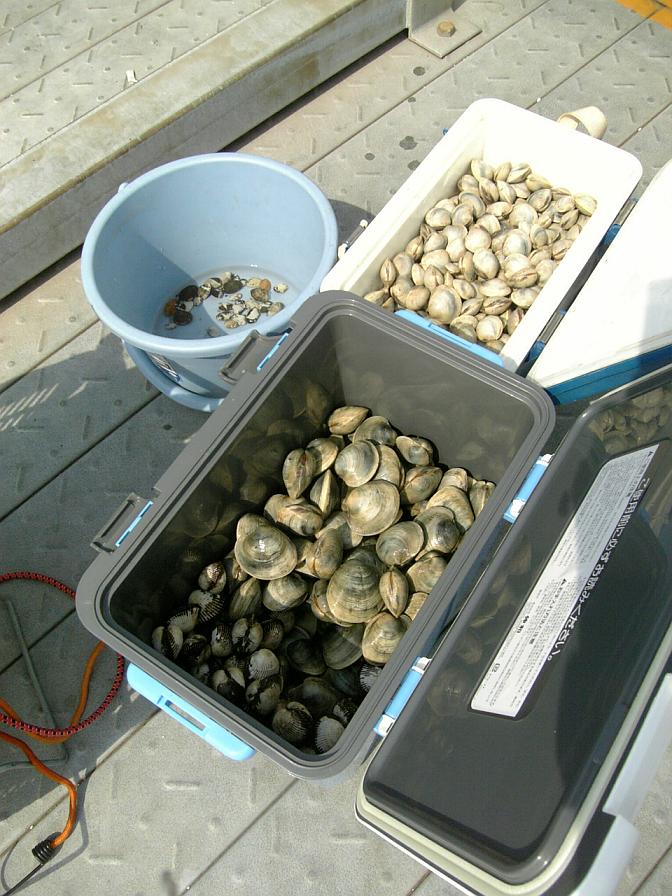 風の影響か?予想以上に潮の引きが甘い。沖目に出れずで小粒中心で5キロほどの収穫でした、、、残念。