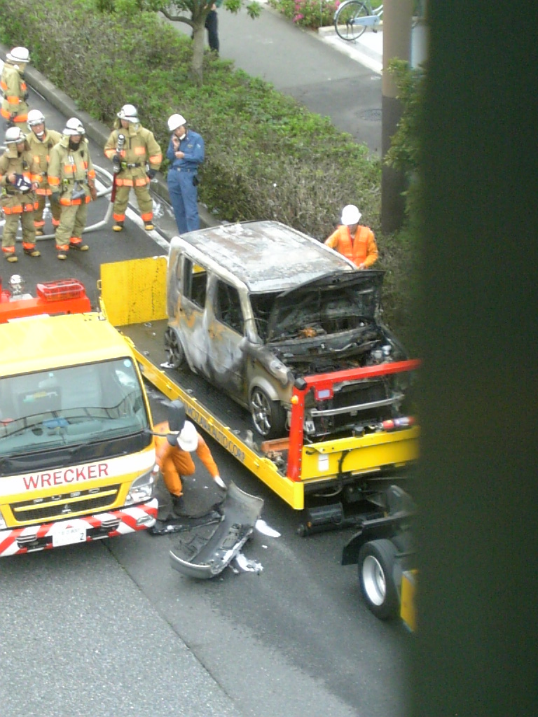 古い車じゃなかろうに、、、、、燃えるんだね。