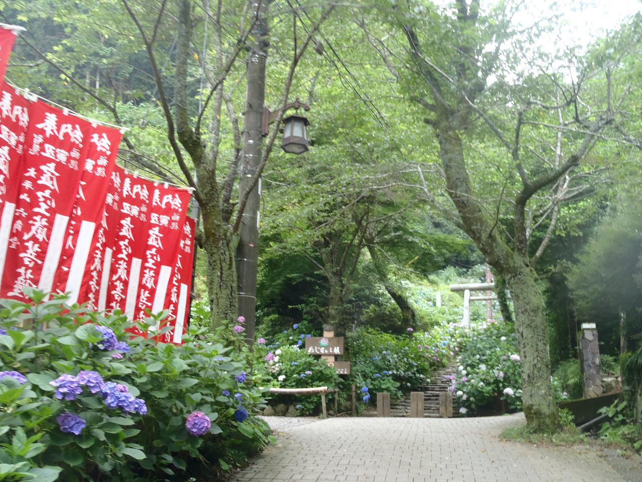 あじさい坂を登って山頂の茶屋まで。